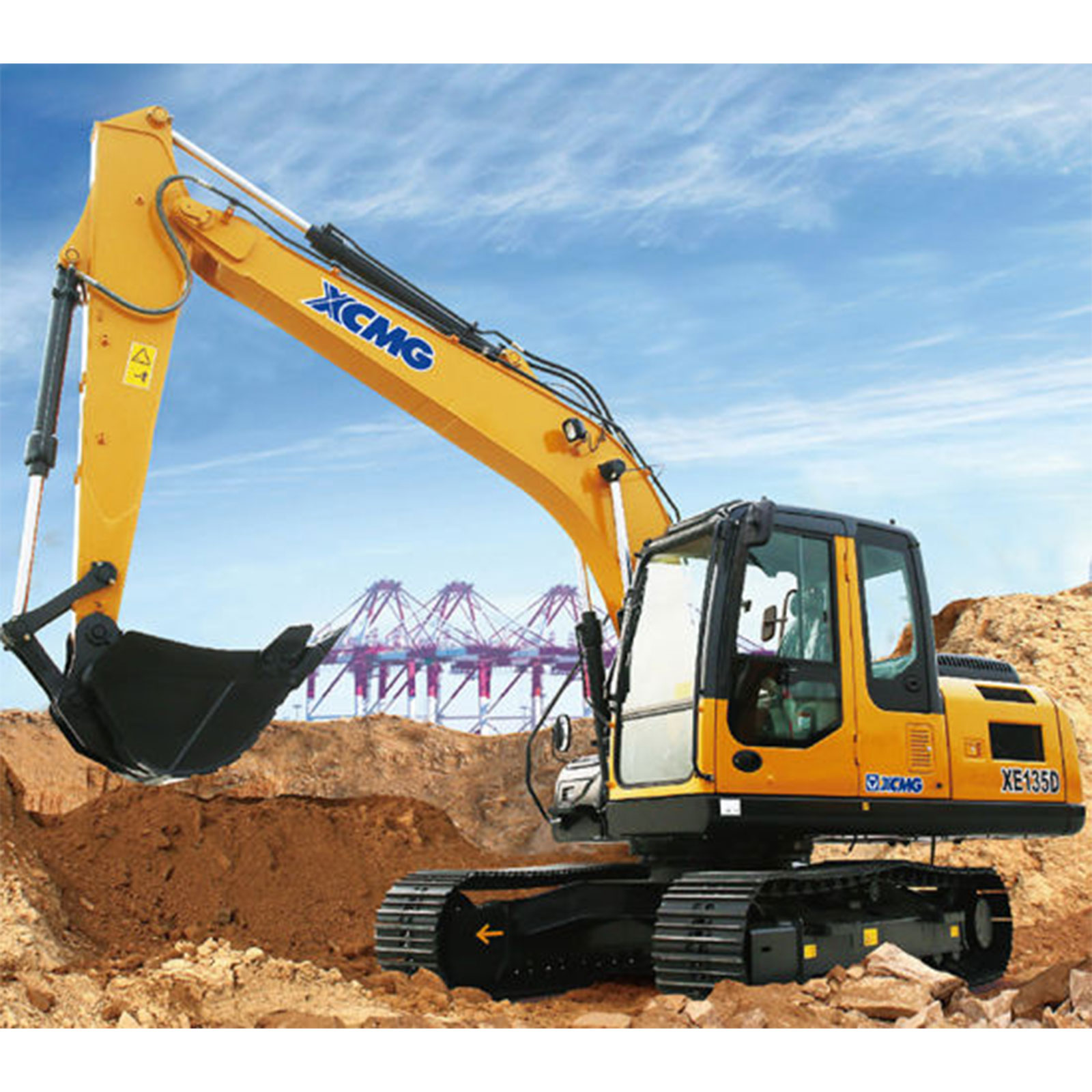 XE135D adopts a new engine jointly developed by XCMG. It has strong power (the highest power among the same tonnage), high torque at low speed, and high fuel economy. It can reduce fuel consumption by 7% compared with the previous generation. New generation internationally famous hydraulic elements are of high rated working pressure, high efficiency, precise control, small impact, and long service life